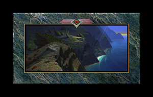 which gave the pieces a framed look without adding a conventional frame.( I sometimes would joke that the piece was an original painting and that the picture in the middle was part of the “frame”) and second, I invented a new method of laminating prints to plex. This method avoided the little bubbles that outgassing sometimes created in the General Graphics laminations, and I could do it in my own studio in Carmel Valley, with equipment I made myself.